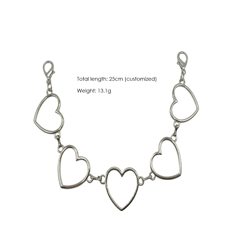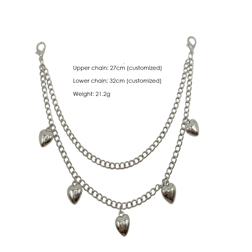 Elevate your handbag style with our premium custom metal charm chain, designed exclusively as a decorative accessory for handbags and purses. This versatile chain features a sturdy silver-plated metal link structure paired with adorable heart-shaped pendants that dangle elegantly, adding a touch of personalization and flair to any bag. Perfect for fashion enthusiasts, our chains are fully customizable – select from various pendant shapes, sizes, and engravings to match your brand or personal aesthetic. Whether you’re accentuating a casual denim look or a sophisticated leather purse, this accessory transforms ordinary bags into statement pieces.